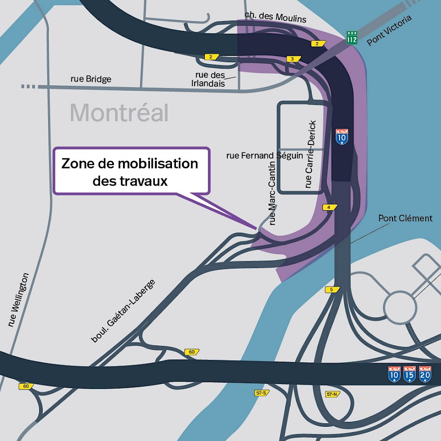 La zone de mobilisation se situera entre le croisement de la rue Marc-Cantin et le boulevard Gaétan Laberge, à l’est, et le croisement de l’avenue Pierre-Dupuy et l’autoroute Bonaventure, à l’ouest.